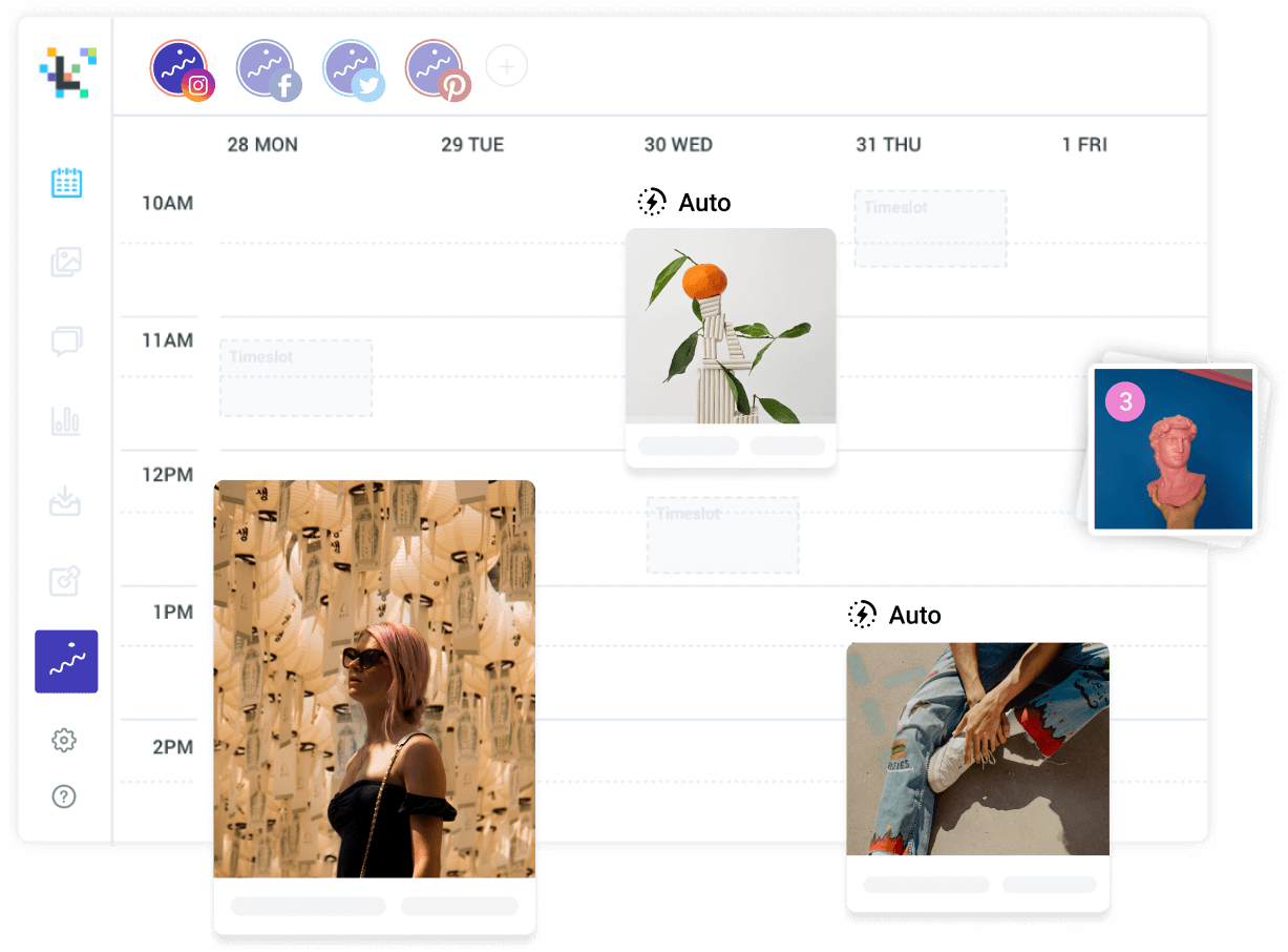 No time for photo shoots? No problem. With the Unsplash Photo Library built right into Later, you’ll have a huge selection of pro photography right at your fingertips.