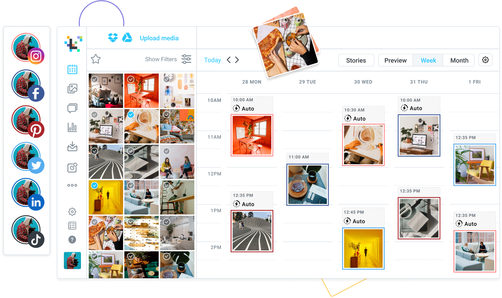 Easily drag and drop content from your Media Library right to your Calendar. Speed up your planning by loading all of your LinkedIn content to your Media Library ahead of time.